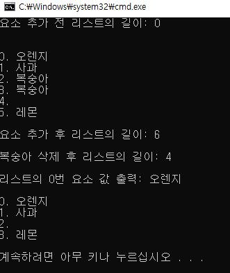 Console.WriteLine($"요소 추가 전 리스트의 길이: {fruitsNameList.Count}");