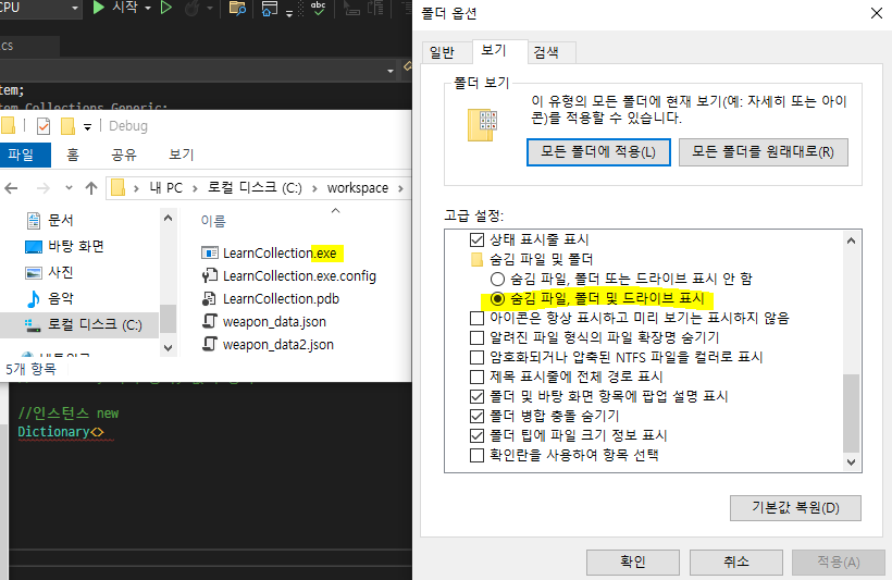 + 만약 파일 확장자(.exe)가 보이지 않는다면 '폴더 옵션'을 변경한다. 폴더 안에 보기나 옵션에 있어...