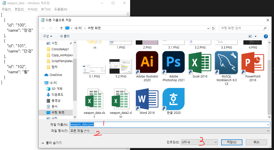 5. 변환-확인-확장자 변경이 완료된 json메모장을 실행기와 같은 위치로 옮겨 저장한다.