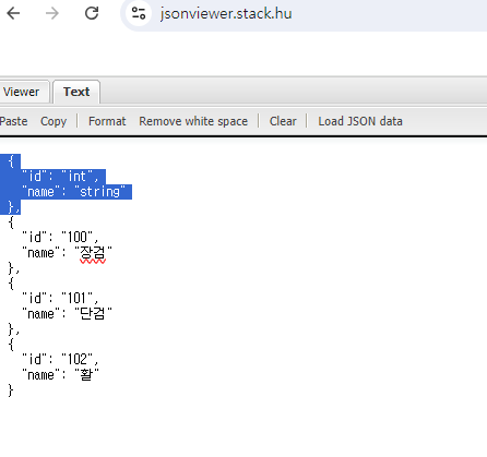 - 내용 중 id, name 란 삭제하고 실 데이터만 남김