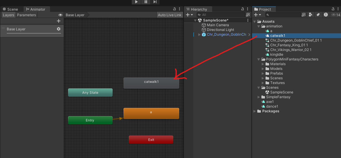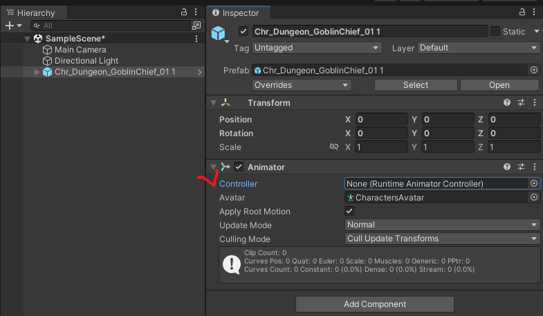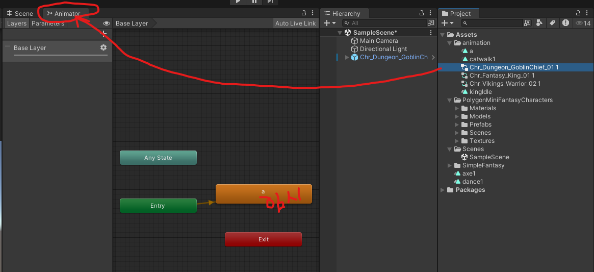 - 애니매이션을 임시로 하나 등록해 [애니매이터]가 자동 생성되게 함