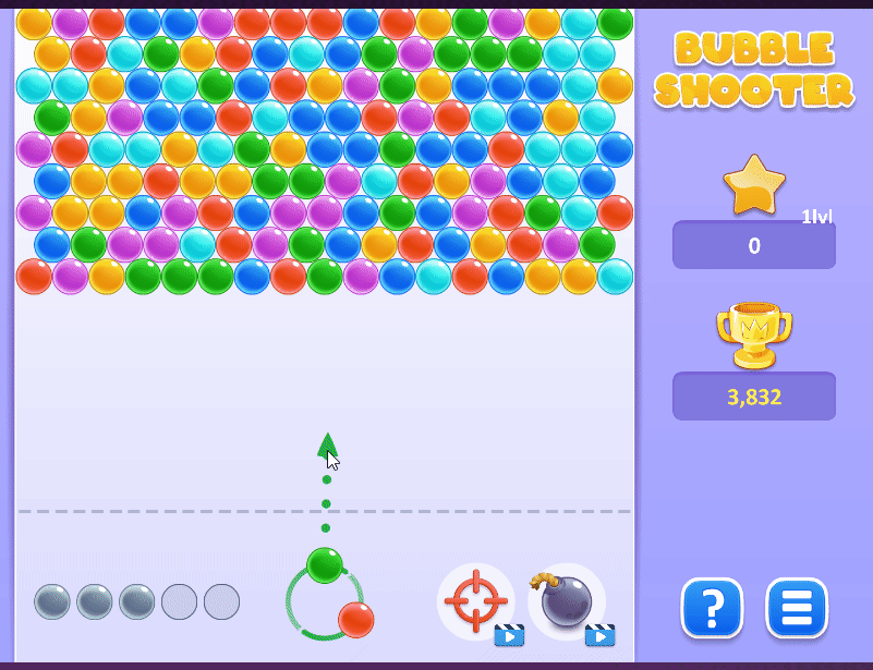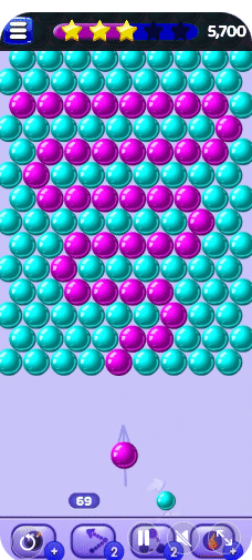 ![]() | Bubble Shooter Space 발사대가 구슬 쪽으로 빠르게 움직여 압박감을 줌 구슬이 깨지며 가루가 됨, 점수 표시 10*13 |