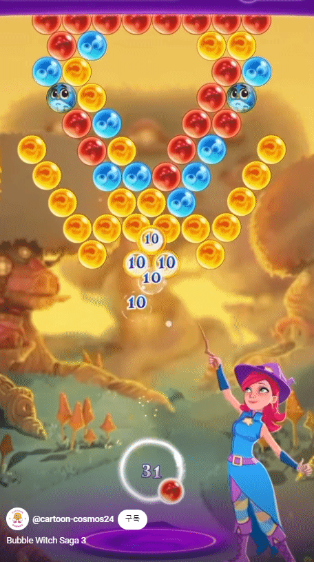 ![]() | 버블 위치3 사가 구슬이 사라질 때 반짝이가 되는 게 너무 잘아서 먼지 같아 보임 발사할 때 힘을 모았다 쏘는 느낌 - 버블이 붙으면 살짝 뒤로 밀리고 터지는 개수에 따라 터질 때 화면 왜곡, 카메라 흔들림 등 강력함을 느끼게하는 연출들(역시 퍼즐 명가 킹) 스테이지 진입 등의 연출에 속도과 무게감이 있음, 마녀가 마법을 쾅!쾅! 콰과과과광! 씀 같은 색 구슬을 터트리는 등 스킬과 아이템이 많음 시간 안에 구슬을 연속해 터뜨리면 점수 +10씩 추가됨 10*11 : 11개 이상 구슬을 붙이면 위로 올라가지 내려오지 않음 |