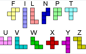 ![]() 폴리오미노(=펜토미노) 12조각: 정사각형 5개를 이었다. |